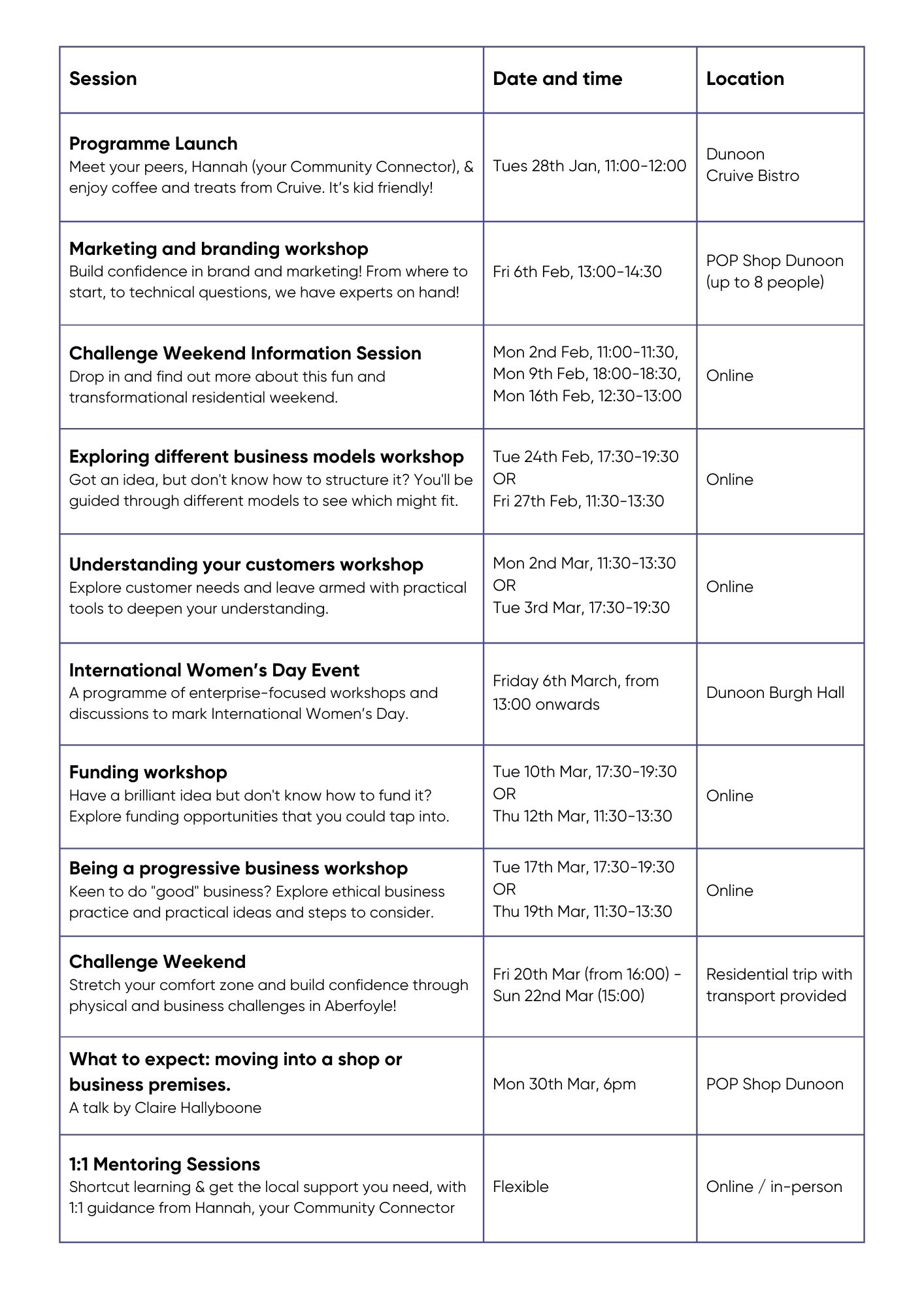 Check out the full programme of support below.
